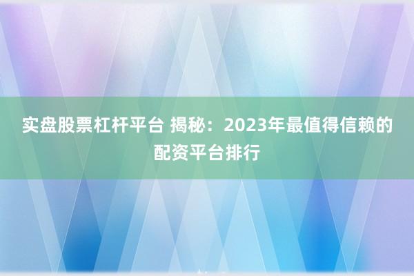 **2023年最值得信赖的配资平台排行**