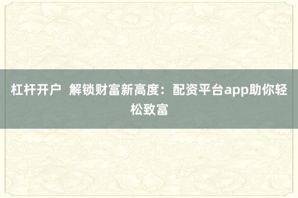 杠杆开户 解锁财富新高度:配资平台app助你轻松致富