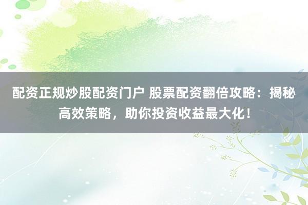 配资正规炒股配资门户 股票配资翻倍攻略:揭秘高效策略,助你投资收益最大化!